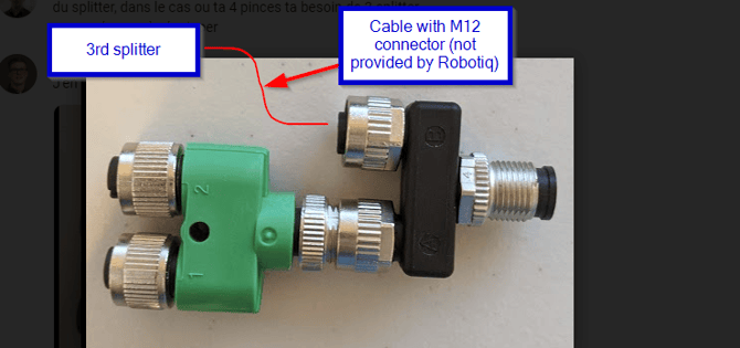 Use three M12 splitter cables to merge all four grippers into a single connection point.
