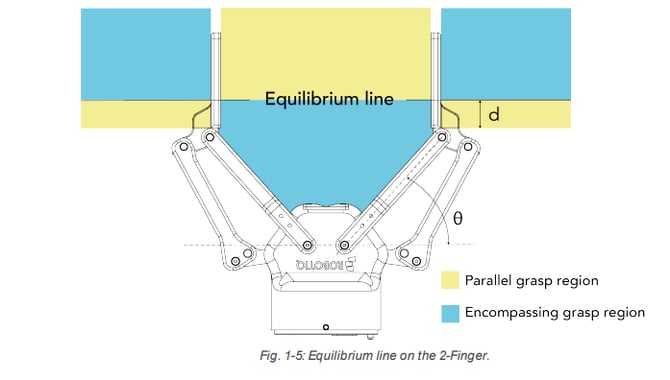 Robotiq grippers are sensitive to fingertip geometry in relation to the equilibrium line: