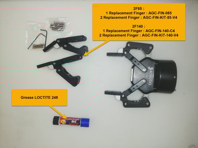 A step‑by‑step guide to replace the fingers on Robotiq’s 2F‑85 and 2F‑140 grippers (V4)