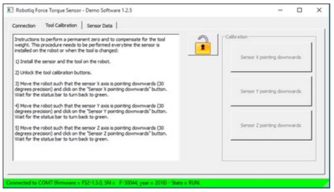 With the Visual Demo Software, you can easily verify the proper functioning of your FT 300 sensor by connecting, calibrating, and visualizing real-time force and torque data. For further details or troubleshooting, visit Robotiq Support.
