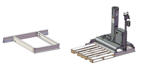 - Instead of modifying the pedestal, users can raise the entire palletizer by installing it on structural beams.