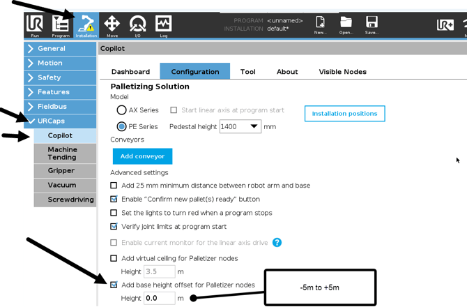 - Go to to Installation > URCaps > Copilot > Configuration.