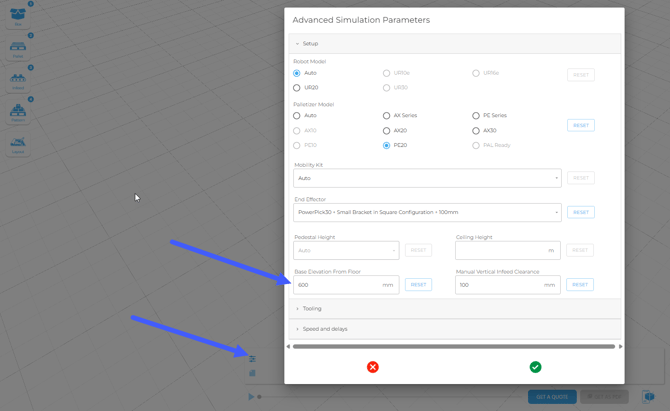 - Our software can manage different setup heights using the "Add base height offset" feature in the Palletizer node.