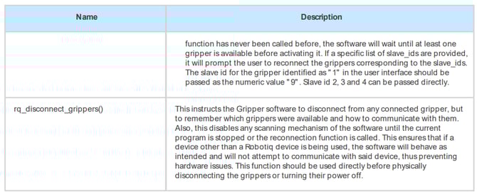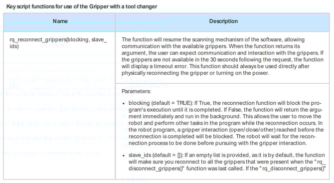 - Call the rq_reconnect_grippers(False) function to launch the reconnection process in the background of the program