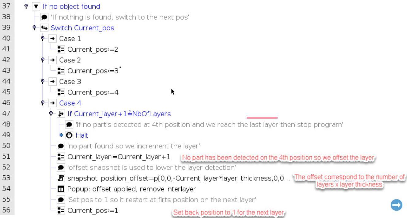 The camera can tolerate approximately ±10% scaling when detecting an object. As a result, if the thickness of your part is relatively small, the camera may detect parts from the layer underneath, especially if the target layer is empty and there is no interlayer to visually block the lower parts.