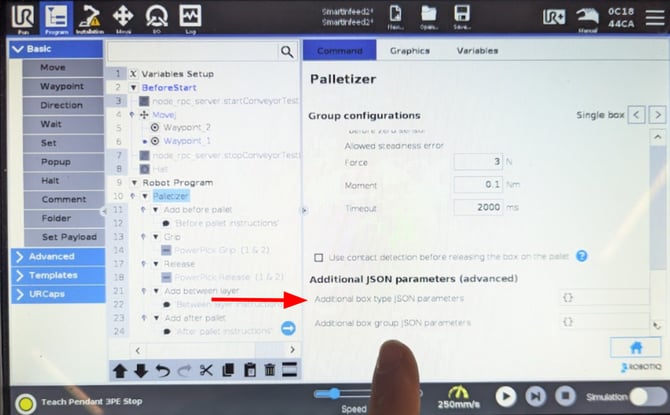 This feature enables the system to read custom JSON parameters from the Palletizer recipe.
